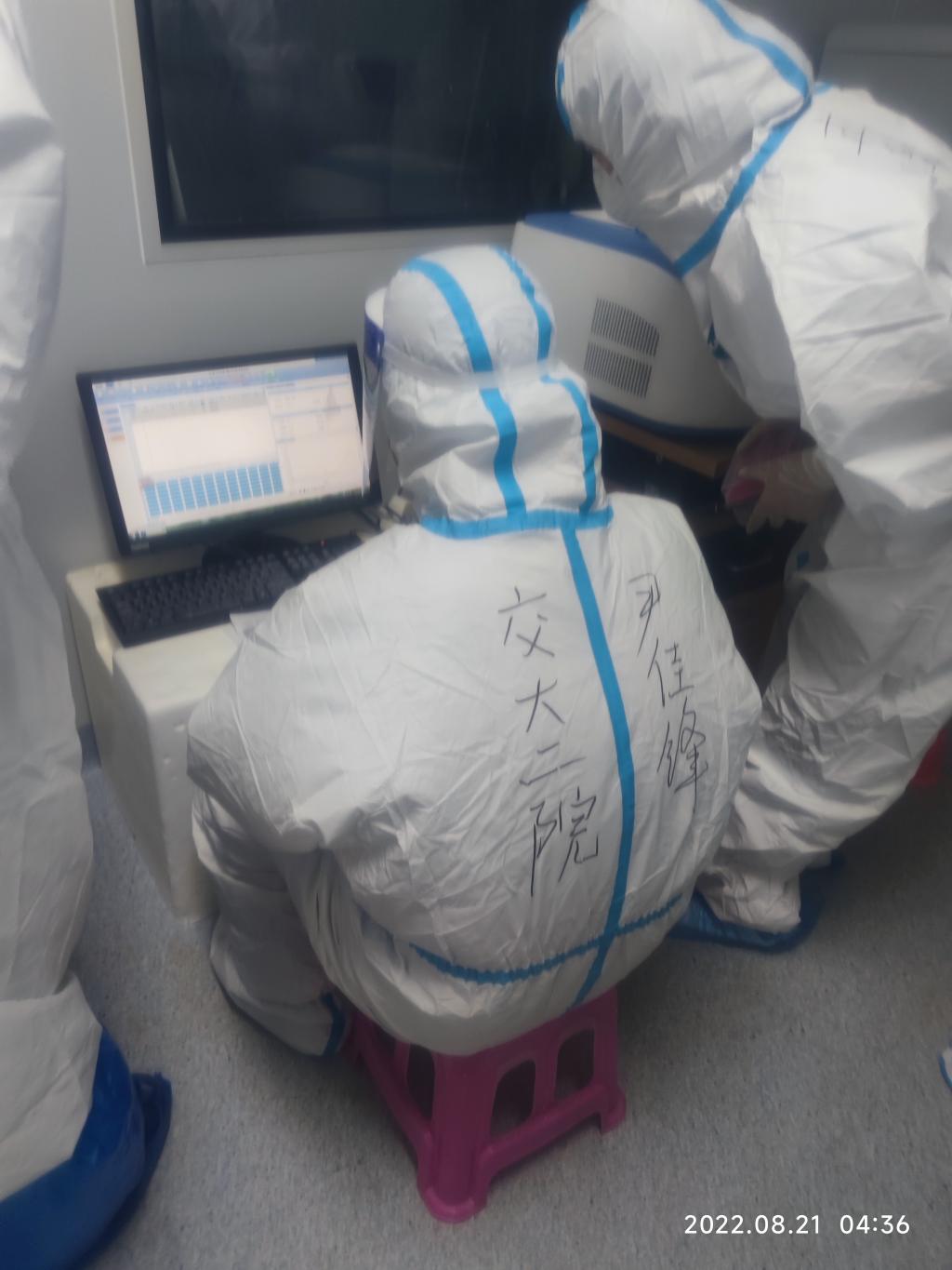 检验是离病毒最近的人,尹佳锋、徐阳医师不顾危险,坚持奋战在抗击病毒的一线,穿着厚厚的防护服工作,吃住在医院,汗水湿透了他们的衣衫、头发,模糊了他们的双眼,他们未言一句辛苦,先后在阿里地区人民医院、阿里地区藏医院支援核酸检测工作。优化当地检验科的工作流程,修改核酸扩增仪程序,扩增时间明显减少,大大缩短了报告时间,为阳性患者的流调工作提供了更充分的时间。另外,从生物安全角度和实验室污染角度出发,制定相关工作规定,对存在问题进行整改。“既然来了,就要全力以赴”说出了二院检验科队员的决心!
