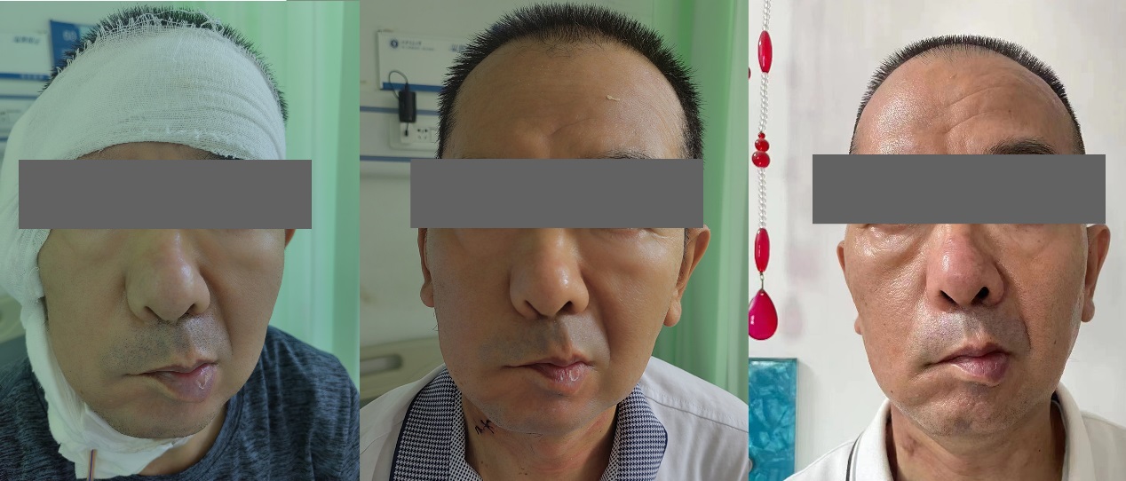56岁的老郑,5月前接受听神经瘤手术,虽然肿瘤得到了全切,但在手术中面神经未能获得保留,术后右侧面神经功能丧失,出现了右侧完全性面瘫。这给老郑留下了深深遗憾,为了改善右侧面神经功能和美观,近期我院神经外科为老郑做了舌下神经降支-面神经吻合术,手术过程很顺利。术后第1天老郑自觉瘫痪侧面部轻松了,而且舌头的活动没有任何障碍。术后10天右侧口角就不流口水了,鼓气时右侧口角也没有漏气,术后1月右侧口角下垂明显改善。