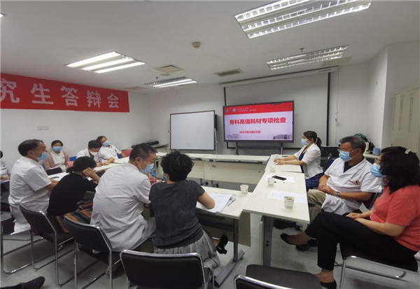 在专项检查座谈会上,高亚副院长强调,近几年高值医用耗材的使用管理曝光度高,骨科、心内科高值耗材已步入集采改革时代,监管力度大。今年高值医用耗材、血液透析是国家医保飞检的重点内容,希望相关临床科室和职能部门高度重视,在日常工作中加强高值耗材的合理使用,规范管理,在DRG付费实施过程中加强耗材成本管控。李文博总会计师结合医院近期高值耗材专项审计有关问题,再次要求各部门加强高值耗材的管理,强化制度落实,严格执行各个环节的过程管理。