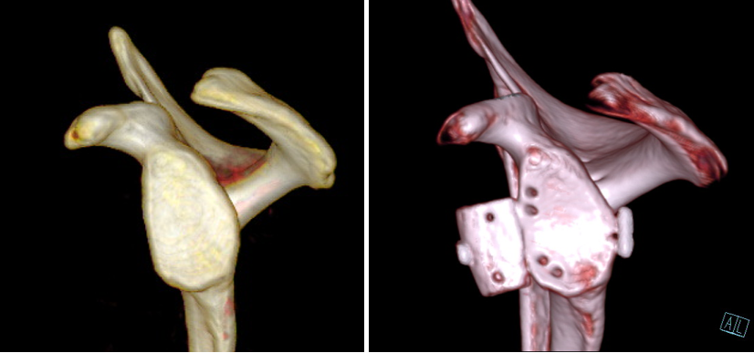 术后患侧肩盂CT复查,与术前相比肩盂面积明显增加