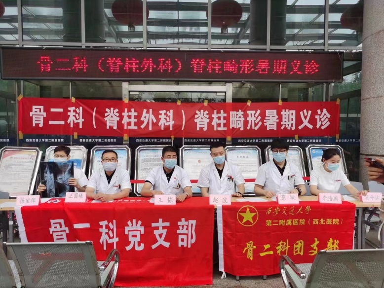 我院骨二科(脊柱外科)是国内最早开展脊柱侧凸矫形的单位之一,在贺西京教授及李浩鹏教授的带领下,先后开展了全脊椎截骨治疗极重度脊柱侧凸、胸腔镜下微创治疗特发性脊柱侧凸、生长棒技术治疗早发性脊柱侧凸等一批国际先进的脊柱畸形矫形手术。本次义诊也是科室多年来以来定期举办的公益活动,目的是普及有关脊柱侧弯的知识,帮助更多脊柱侧弯患儿得到及时、正规、妥善的治疗。