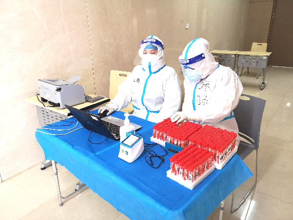 在西安市疫情防控指挥部宣布新一轮核酸检测后,交大二附院接到紧急任务,紧急组建“交大创新港校区核酸采样队”进驻交大创新港为全员进行核酸检测。大家踊跃报名,热情高涨,因为我们有坚定的信念,我们一定会打赢这场保卫战。配合政府织好织牢防控疫情大网,做到“早发现、早报告、早隔离、早治疗”,坚决阻断疫情传播链条。