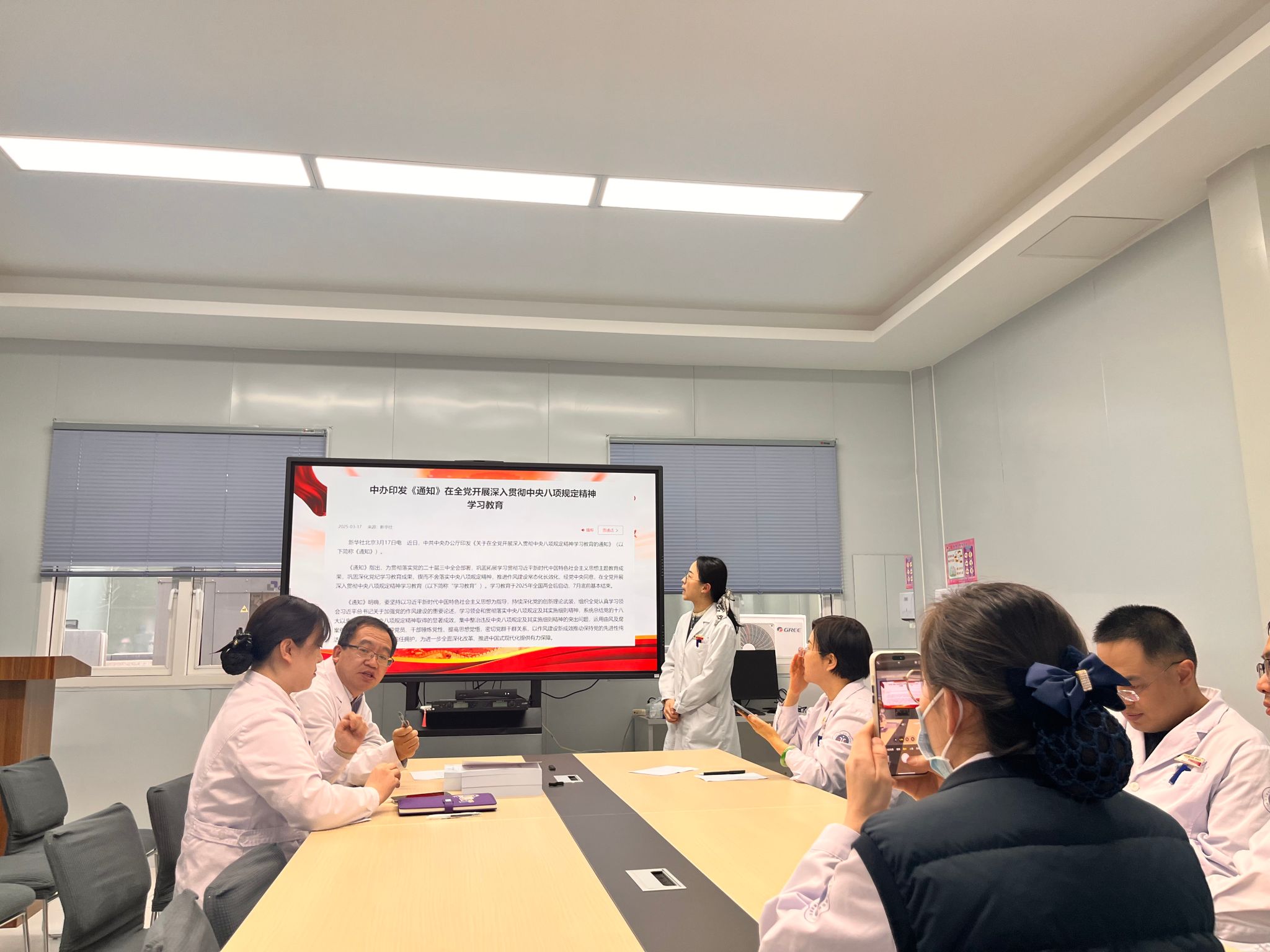 本月主要学习内容由潘书沛同志带领大家学习关于《深入学习党中央八项规定精神》。许雅琼委员传达院党委关于民族信仰和宗教相关内容。最后由马红兵支部书记带领大家学习以党建引领推动医院高质量发展。