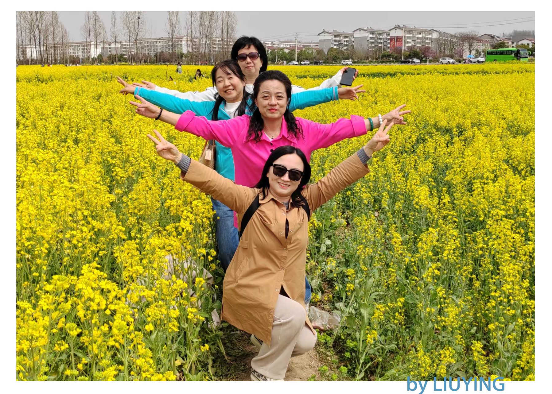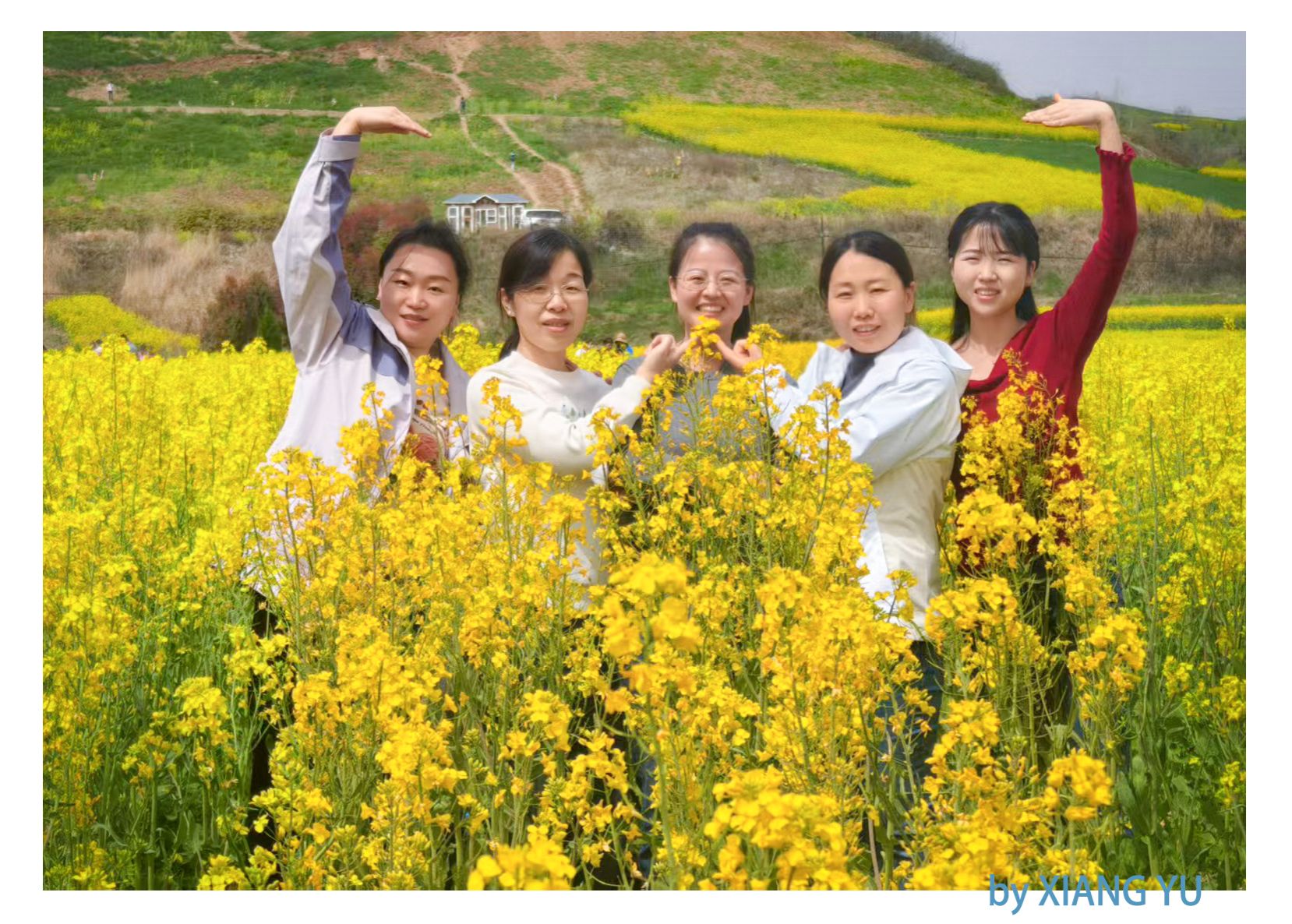 转场至邦淇菜籽油有机基地,万亩花海如金涛奔涌。阳光穿透薄雾洒在绵延起伏的波浪上,千万朵花蕊折射出细碎光晕,宛若星河倾落。众人驻足田埂,任由衣袂沾满金色花粉,镜头定格下她们俯身轻嗅花簇的瞬间——飞扬发丝间停驻着振翅的粉蝶,睫毛上凝结的晨露与花瓣上的朝露同样晶莹。“原来在自然的调色盘里,最震撼的杰作无需任何雕琢。”有人轻声呢喃。快门声中,这片金色海洋正将春天的密码写入每个人的眼帘。