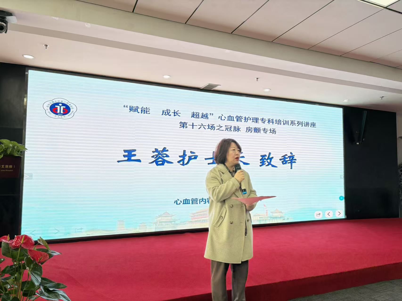 11月14日下午,心血管内科在大明宫院区14楼会议室举办了《赋能•成长•超越》心血管系列讲座第十六讲之冠脉房颤护理专场护理沙龙。沙龙由副护士长曹春晖、雷蕾精心组织,彭青青、吕彩玉担任主持。本次沙龙以“‘冠’爱之名,防‘颤’赋能”为主题。心血管内科王蓉护士长强调,沙龙需立足临床实践转化护理科研成果,为提升患者就医体验筑牢根基,并对组织者的筹备工作给予了高度肯定。