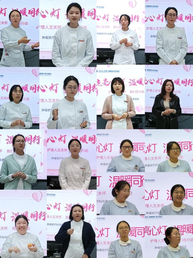 温暖续航:科室人文关怀在行动。分享环节后,活动回顾了科室已为患者提供的一系列人文关怀措施:1、 设施关怀:从“放疗小院”的晾衣杆,到住院部二楼的微波炉,再到贴心的空调挡风板,细节之处尽显温暖。2、 健康服务:带领头颈部放疗患者做功能锻炼操、定期开展患教活动、设置疾病知识二维码、撰写科普公众号文章、通过科室内协调增敏针时间减少患者奔波……护理团队始终在行动。