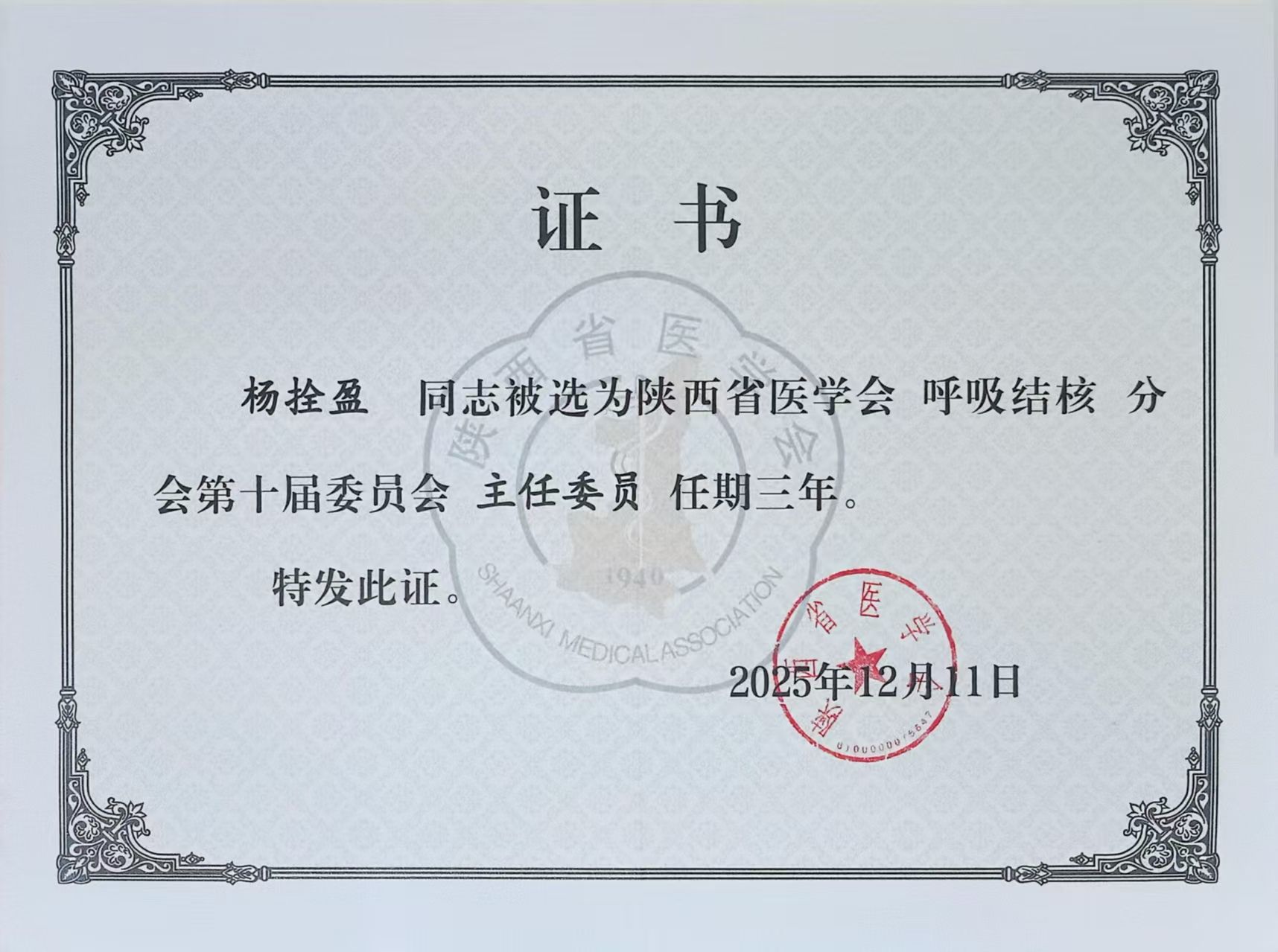 值得关注的是,就在三个多月前,杨拴盈教授凭借深厚的学术造诣和丰硕的临床科研成果及学术影响力,荣任中华医学会呼吸病学分会第十二届委员会常务委员,此次再添省级分会主任委员头衔,既是对其个人学术造诣、临床实力与行业影响力的双重认可,更标志着我院呼吸学科的综合水平获得全国及区域同行的高度信赖。