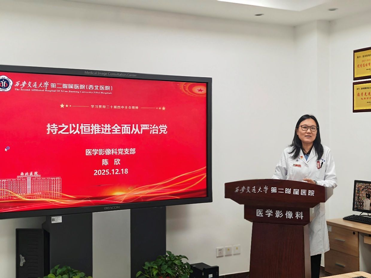 会议上,影像科党支部陈欣书记以“学习贯彻党的二十届四中全会精神-持之以恒推进全面从严治党”为主题,带领支部全体党员及科室骨干进行理论学习。党和国家事业之所以能够取得历史性成就、发生历史性变革,续写“两大奇迹”新篇章,关键在党、关键在全面从严治党。全面从严治党为新时代党和国家事业提供政治保障、组织保障、作风保障及纪律保障;当前新形势新任务对全面从严治党提出新要求;全党必须以永远在路上的坚韧执着纵深推进全面从严治党。