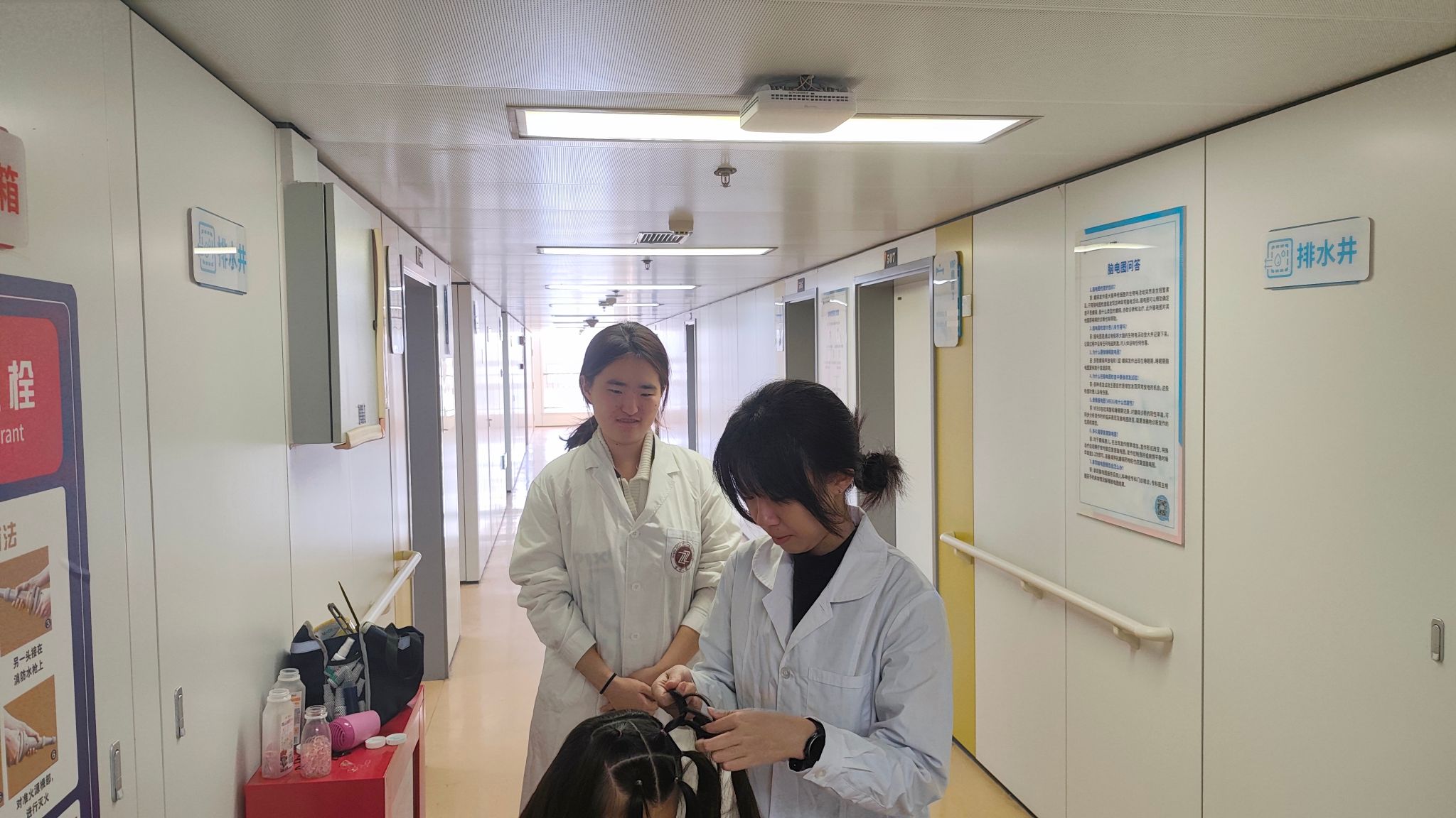 本次志愿服务以“精准对接需求、涵养人文关怀”为原则,志愿者经过系统岗前培训后被分为5个小组,奔赴医院各服务岗位开展工作。在24小时脑电图监测室,志愿者协助医护人员耐心安抚等待监测的患者及家属,提供温暖关怀;走进儿科血液病病房,志愿者化身“暖心陪伴者”,通过多样的互动方式,驱散孩子们治疗期间的孤单,用童真关怀传递医学温度;进入到PICU、ICU病房特殊诊疗环境里,志愿者严格遵循科室要求,规范穿戴防护装备,在医护人员指导下承担部分基础性工作;在门诊导医岗位,志愿者熟悉就诊流程与科室分布,主动为老年患者、行动不便患者提供挂号引导、缴费协助、报告打印等服务,细致解答患者就诊疑问,有效提升门诊服务效率,让患者感受到“一站式”诊疗关怀。