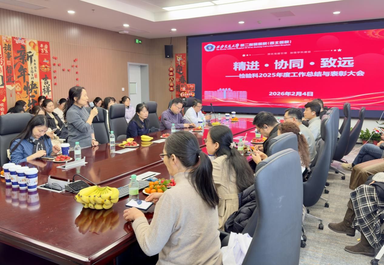 凝心聚力启新程,砥砺奋进谱新篇。2026 年 2 月 4 日下午,医学检验科于干部楼六楼会议室召开2025 年度工作总结暨表彰大会,科室全体员工齐聚一堂,全面总结 2025 年工作成果,表彰先进典型,共同谋划 2026 年发展蓝图。