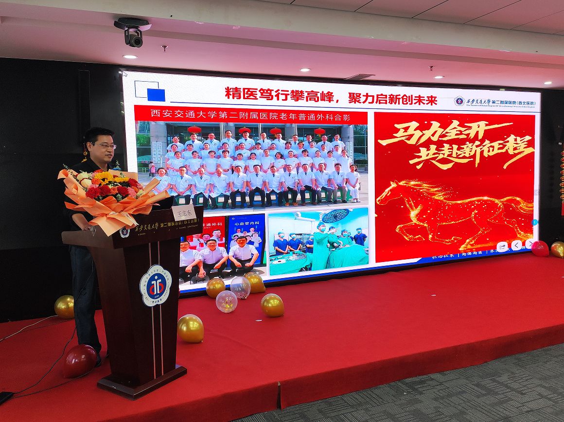 随后,西安交通大学基础医学院副院长霍福权教授对老年普外科取得的亮眼成绩表示祝贺,直言这是一个充满活力、未来可期的新兴科室。科研与学科发展非一人之功,唯有众人携手方能行稳致远,并高度肯定老年普通外科在多重竞争的医疗环境下展现的发展韧性,以及高瞻远瞩的视野,提早布局的规划,海纳百川的胸怀。