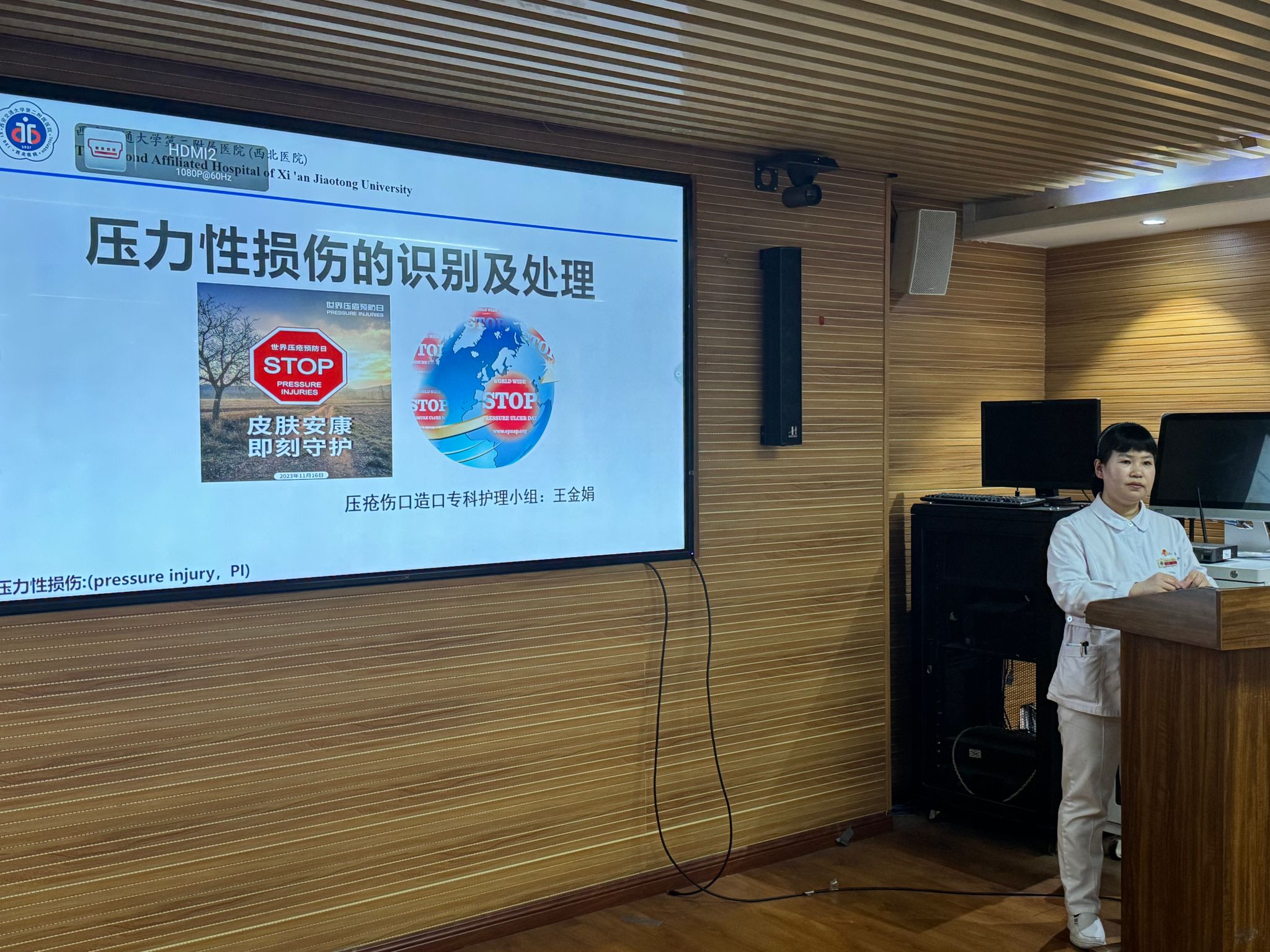会议首个环节,王金娟副护士长聚焦压力性损伤的识别与处理开展专题培训,结合《压力性损伤预防及处理》专业内容,讲解了压力性损伤6期分类、伤口评估三角、各期损伤核心处理原则等关键知识,并通过现场分组抽签形式组织案例分享研讨,40分钟的沉浸式实战分析,让参会人员进一步夯实了压力性损伤临床识别、分期判断与针对性处置的实操能力。