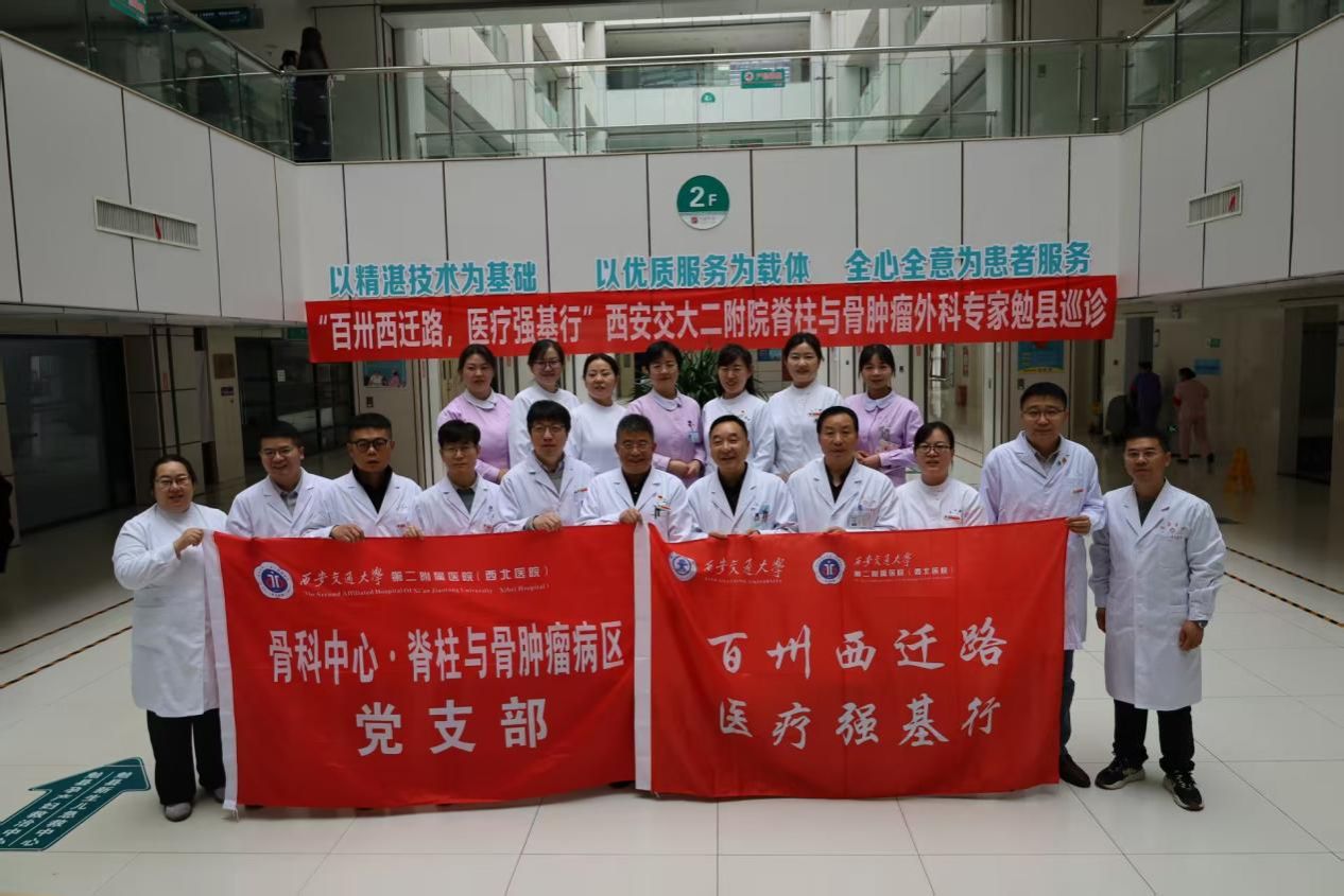 近日,骨科中心脊柱与骨肿瘤病区党支部组织党员专家团队,由支部书记王栋主任带队,一行13人,前往汉中市勉县医院开展义诊惠民、学术交流活动,并赴抗美援朝一级战斗英雄杨育才家乡开展红色研学,以实际行动为校庆献礼,为基层送健康、传精神。