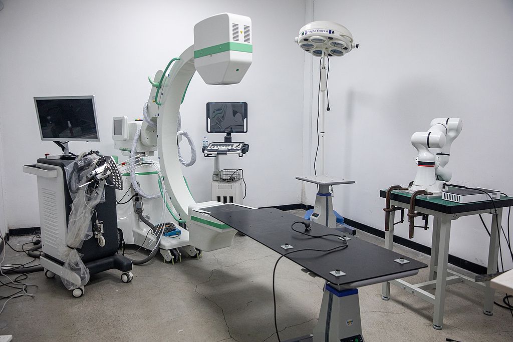 2024年12月4日,杭州,医疗机器人创新工坊内的手术机器人。