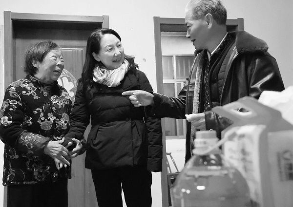 西安交通大学第二附属医院党委书记刘昌(右二)到村民家中慰问。