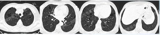 需要强调的是,LIP影像表现较为复杂——弥漫性GGO+边界模糊之小叶中心性结节+胸膜下结节+支气管血管束增粗+多发囊样气腔,各种征象可单独或同时存在。我们最近几期病例会聚焦在弥漫性囊性肺疾病,所以展示的病例影像基本以囊变为主。
