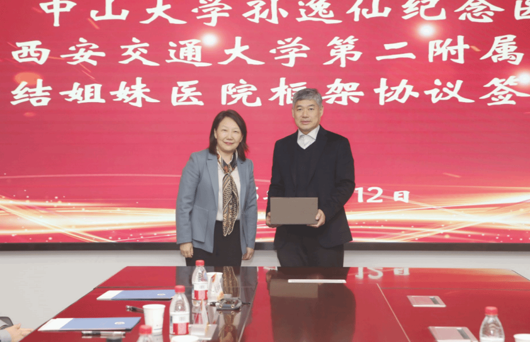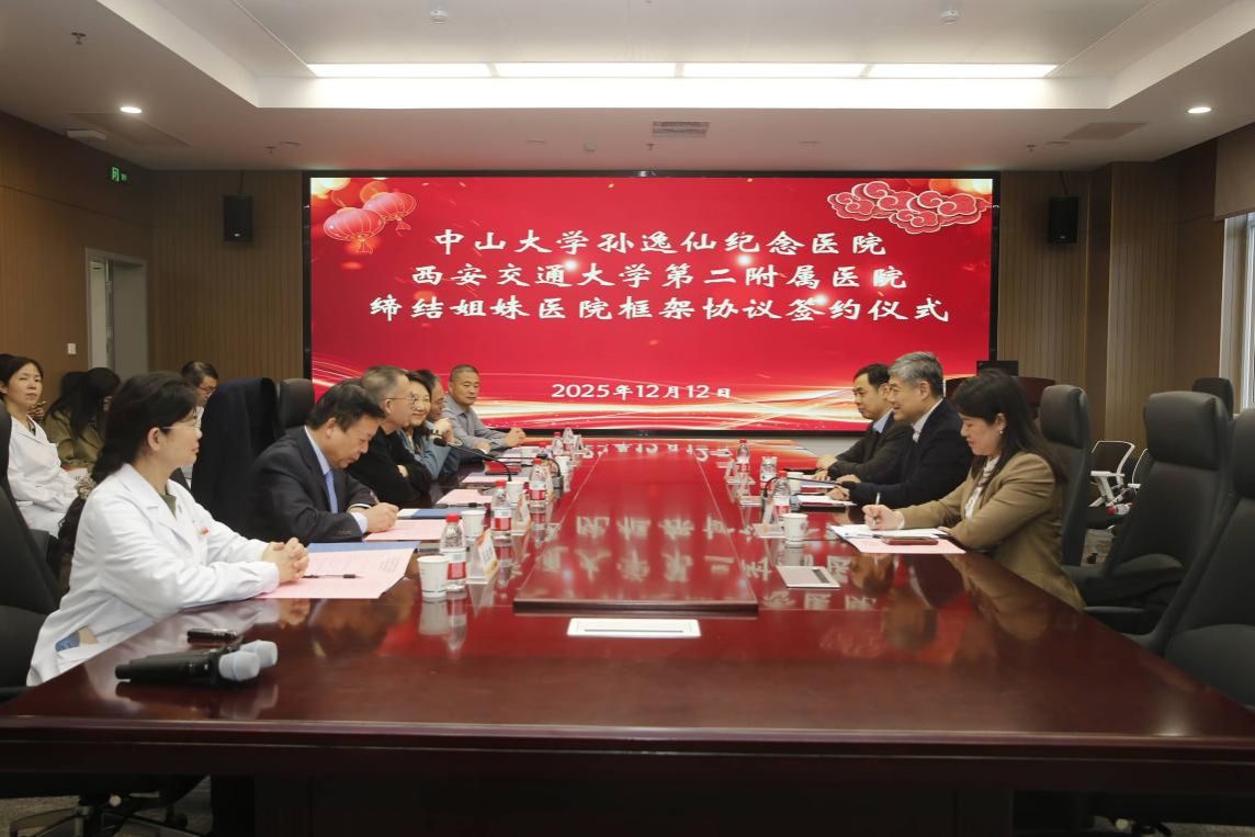 2025年12月12日下午,我院顺利举行了与中山大学孙逸仙纪念医院缔结姐妹医院框架协议签约仪式。中国科学院院士、中山大学医学部主任、孙逸仙纪念医院院长宋尔卫,西安交通大学医学部主任吕毅,西安交大二附院党委书记刘昌、院长张蓬勃等双方领导及学科骨干出席签约会,共同见证两院开启深度合作新征程。