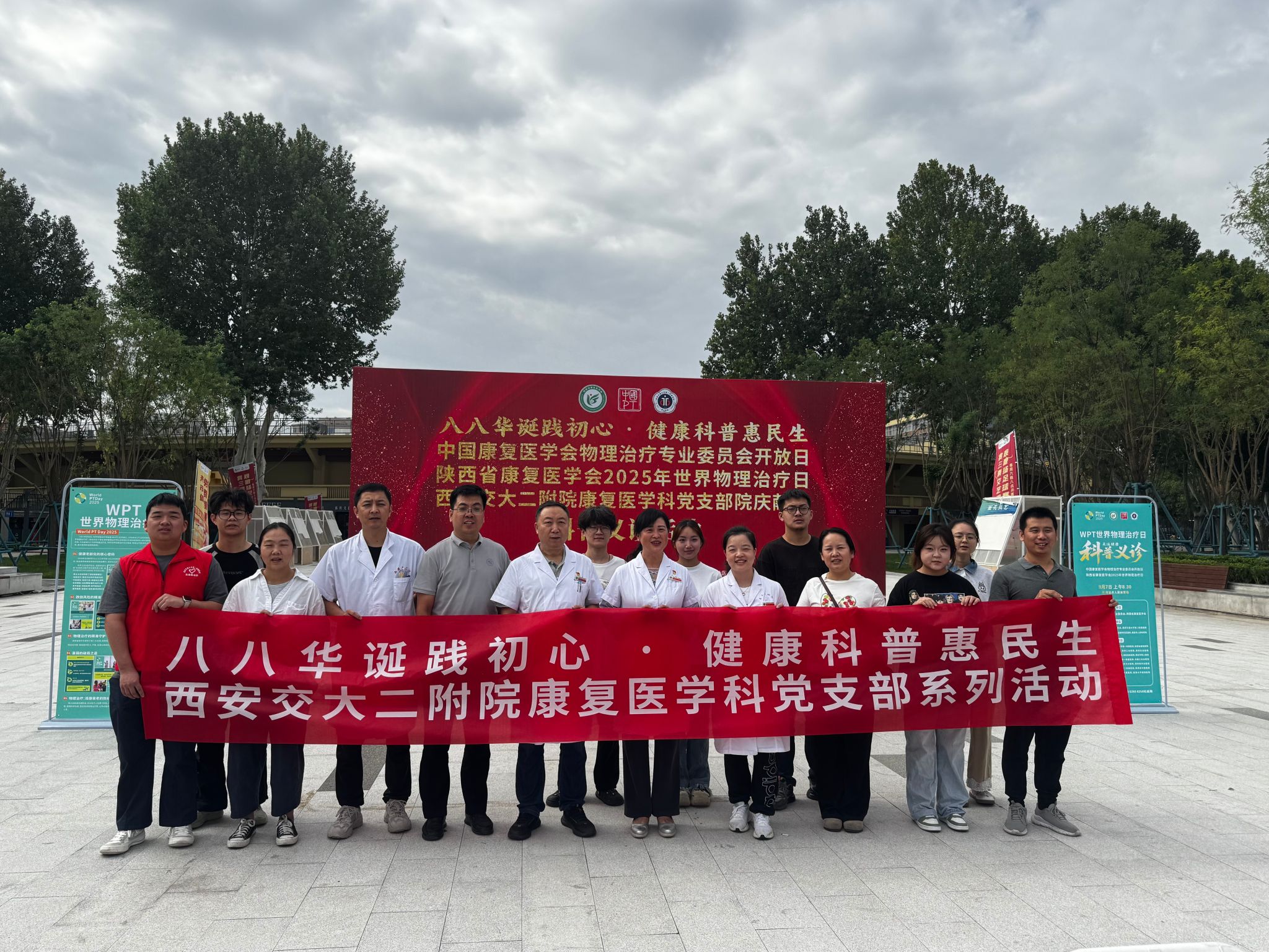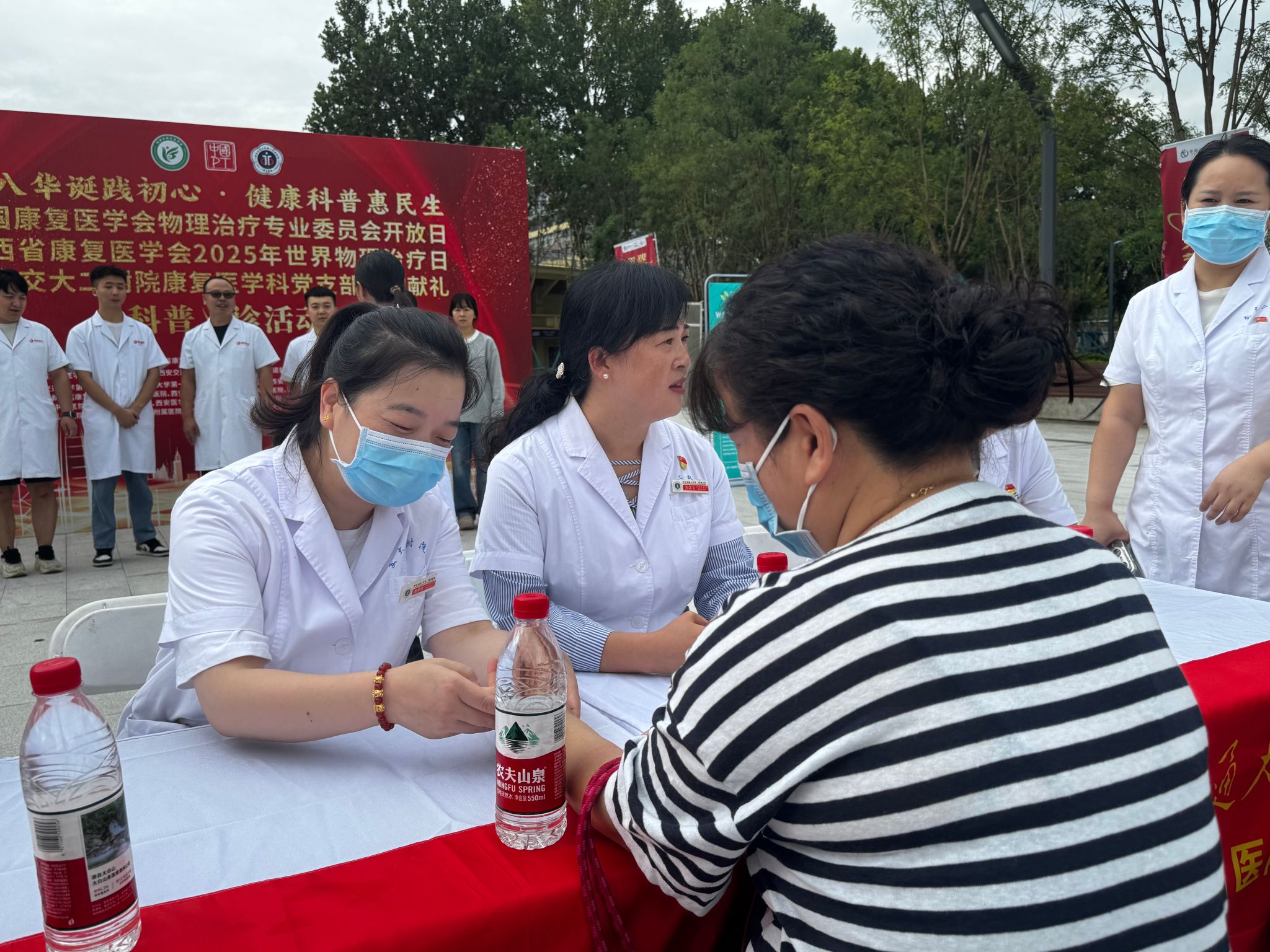 2025年9月7日上午,我院康复医学科党支部联合陕西省康复医学会物理治疗专业委员会,在西安市人民体育场前广场举办了以“八八华诞践初心,科普义诊惠民生”为主题的大型科普义诊活动,活动得到了西一路街道、兴盛社区和市体育场的大力支持。现场有来自西安市27家医疗单位的80余名专家为前来的群众进行咨询指导,康复医学科党支部组织科室党员、团员和科室进修实习人员20多人进行现场义诊服务。