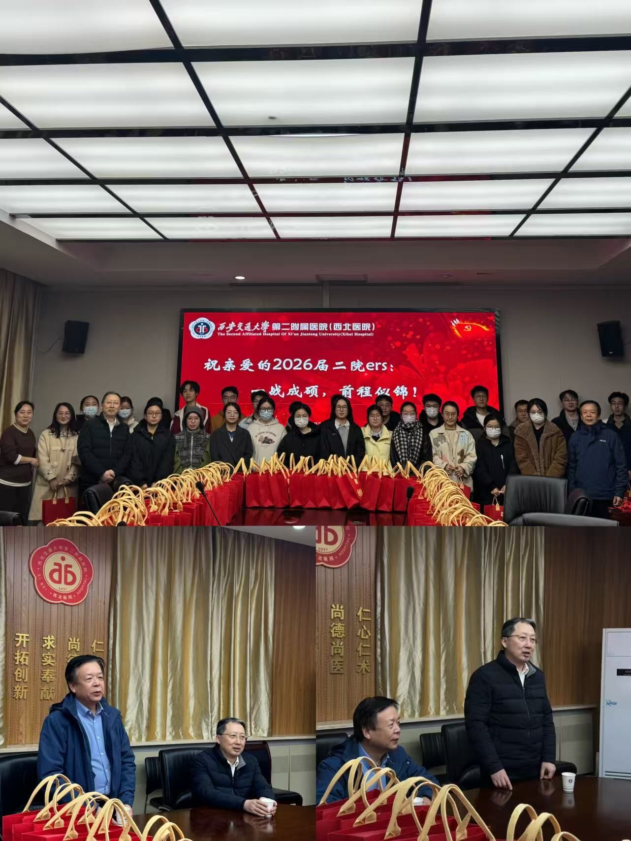 张蓬勃院长寄语考研学子:“疫情让我们看到了年轻人的责任和担当,考研是大家对自己的挑战,祝愿大家马到成功、一战成硕!”滕文葆副书记鼓励大家:“相信大家也知道,二附院的考研率一直很高,大家要对自己充满信心,我们在二附院等着大家的好消息!”学生工作部主任吕晔最后对大家说:“除了物质上的支持,我们更希望传递一种信念,二院始终是学子们最坚实的后盾。学工部对大家的祝福都化作这一个个考研礼包,我们一直在一起!”随后,张蓬勃院长和滕文葆副书记为即将参加全国硕士研究生入学考试的学子代表们发放了考研礼包。