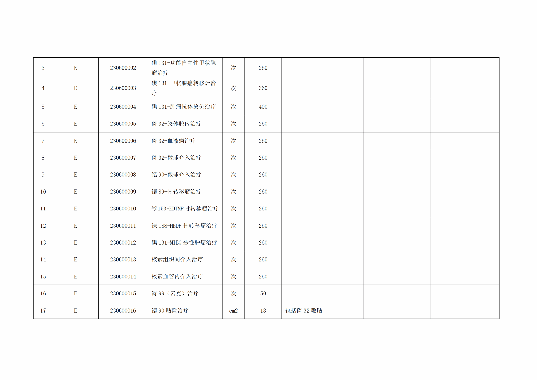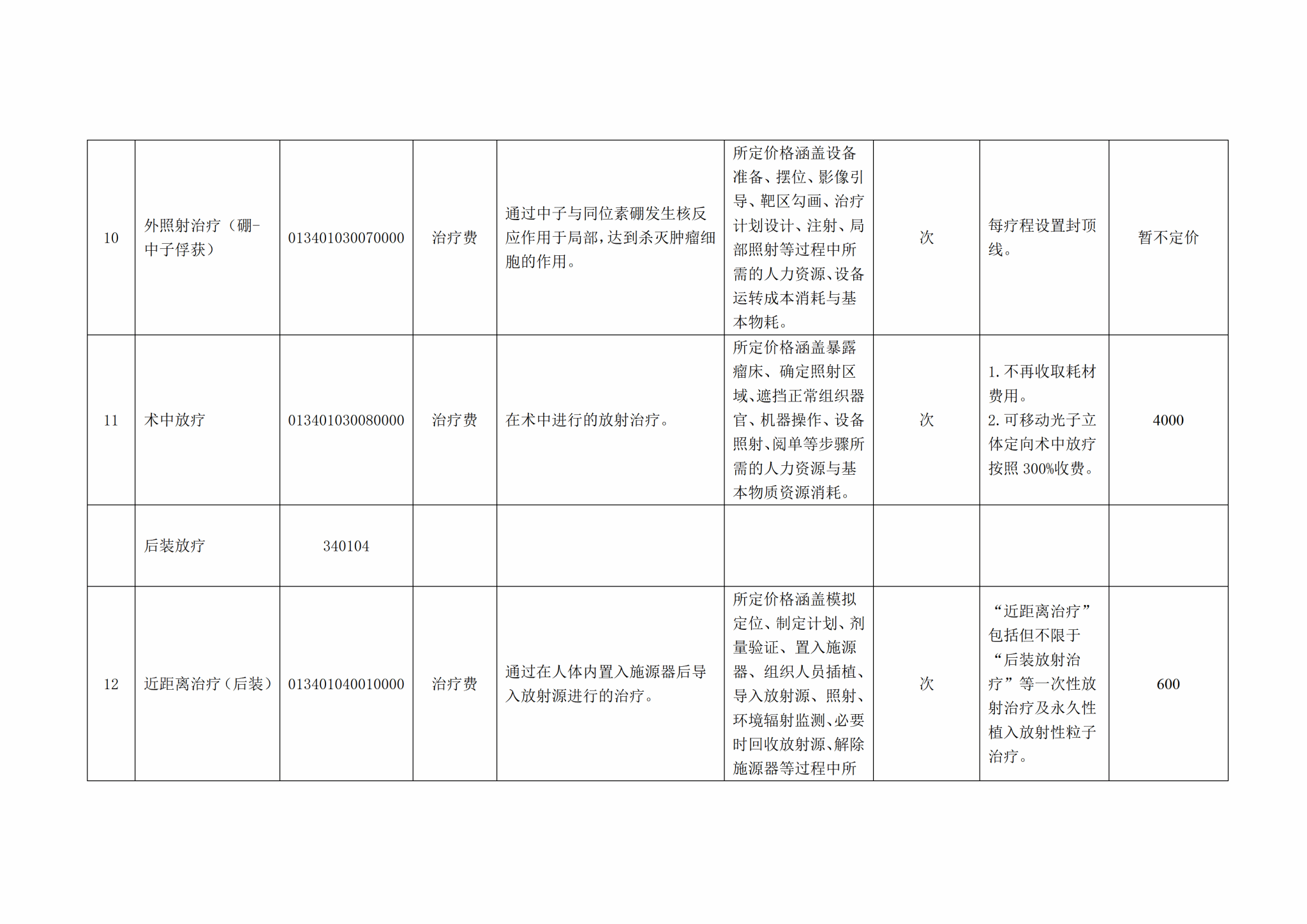 关于整合规范放射治疗类医疗服务价格项目的公示