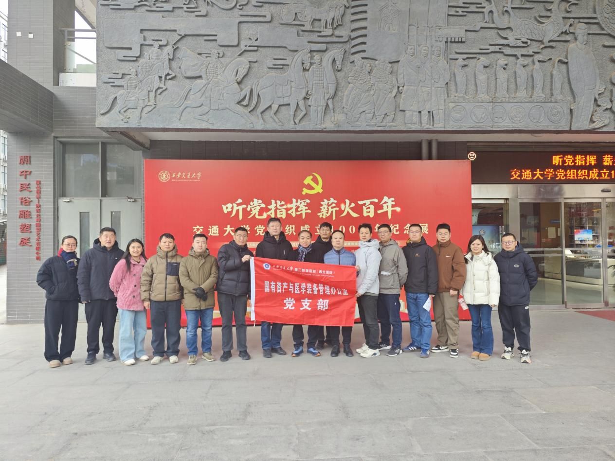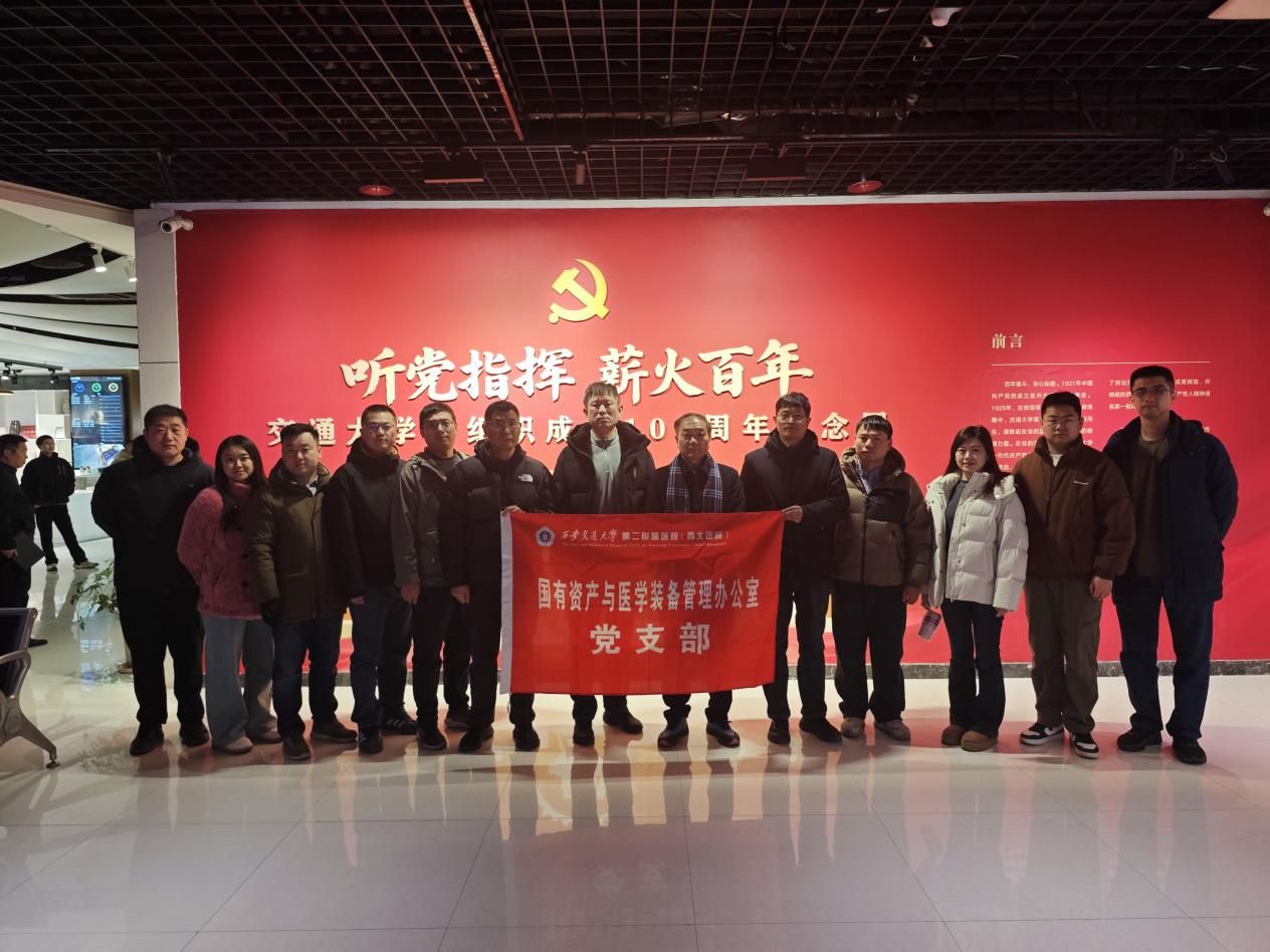 为持续深化党史学习教育,筑牢党员干部理想信念根基,2026年1月19日上午,国有资产与医学装备管理办公室(以下简称国装办)党支部组织全体党员和入党积极分子前往西安交通大学博物馆,开展“听党指挥 薪火百年”主题党日活动,集体参观交通大学党组织成立100周年纪念展。此次活动既是一堂生动的党史教育课,也是一次深刻的思想淬炼和精神洗礼。