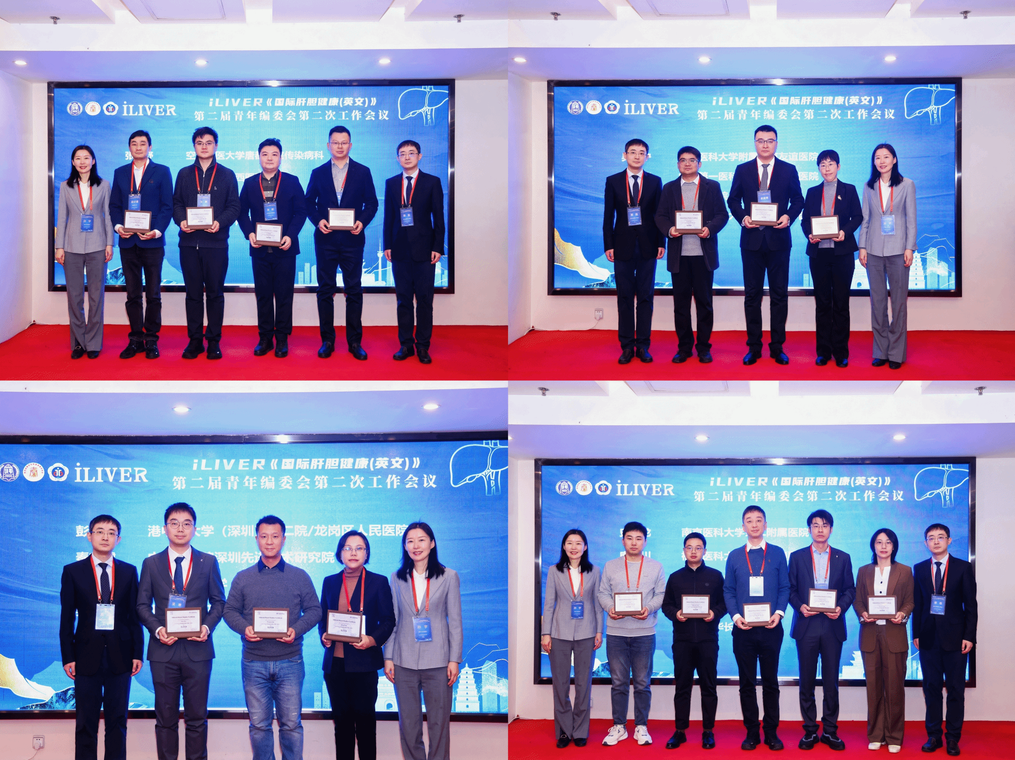 由清华大学出版社副总编孙宇教授为青年编委们颁发聘书,聘任首都医科大学附属北京友谊医院吴晓宁教授、山东第一医科大学附属省立医院范修德教授、西安医学院全科医学研究所冯巩教授、上海中医药大学附属岳阳中西医结合医院袁建勇教授、香港中文大学(深圳)附二院/龙岗区人民医院彭青教授、中国科学院深圳先进技术研究院秦文健教授、海军军医大学秦婴逸教授、南京医科大学第二附属医院史艳龙教授、福建医科大学孟超肝胆医院唐世川和赵必星教授、上海东方肝胆外科医院王明达和吴寒教授、中南大学湘雅三院庄权教授、北京清华长庚医院王思远教授、空军军医大学唐都医院张野教授、四川大学华西医院张勇教授、武汉大学中南医院朱倩教授等为iLIVER青年编委。他们中既有临床技术精湛的专家,也有深耕基础研究的学者,还有交叉学科的创新者。这一刻,会场星光熠熠,一张覆盖全国、连接多学科的年轻学术网络就此加固,预示着iLIVER未来将获得更为多元、强劲的支持,体现了iLIVER青年编委梯队的持续活力与成长。