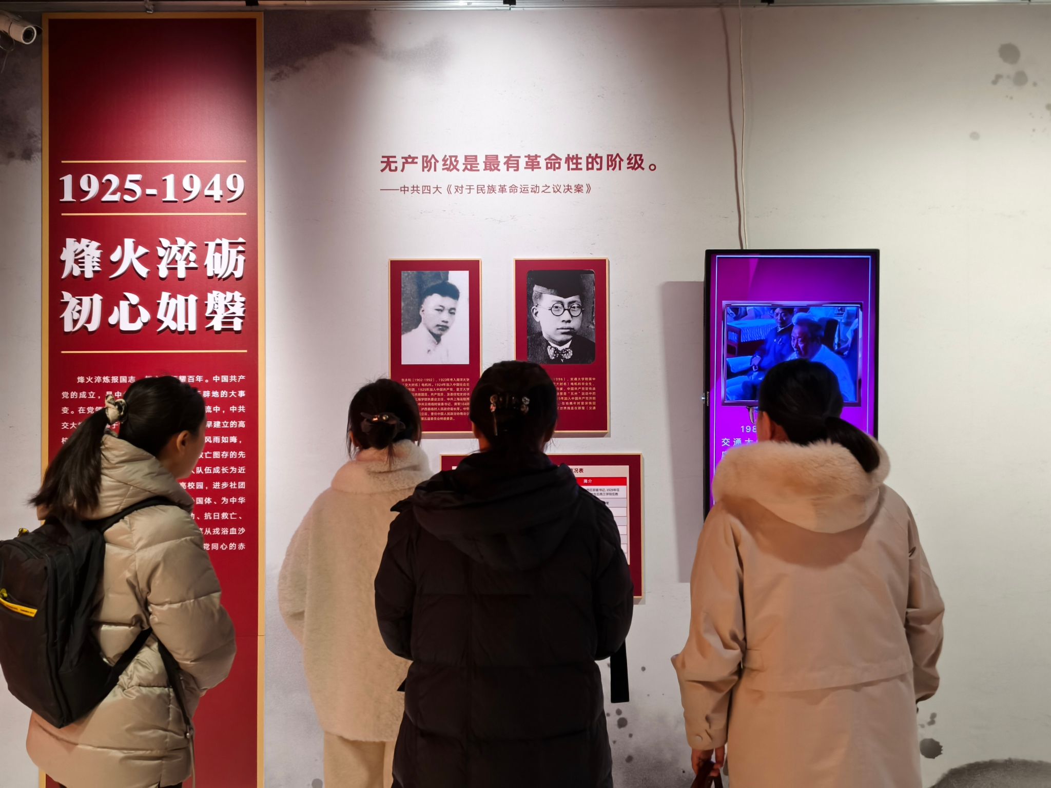 展览分为“烽火淬砺 初心如磐”“西迁壮歌 笃行兴学”“改革赋能 聚力育才”“守正创新 逐梦强国”四个篇章。通过一百余幅历史图片与多件珍贵实物,生动展现了交通大学党组织自1925年成立以来,在革命、建设、改革各个历史时期始终发挥先锋作用的百年征程。作为中国高校最早的党团组织之一,交大党组织在民族危亡之际坚守教育救国信念,在新中国建设时期积极响应号召投身西部,在改革开放和新时代勇担使命、开拓进取。这段历史深刻诠释了坚持党的领导是事业发展的根本保证,也揭示了只有将个人理想融入国家需要,才能实现人生价值。