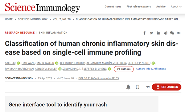 西安交大二附院皮肤科刘亚乐副研究员在免疫学顶级期刊《Science Immunology》发表原创论文揭秘疑难皮损的炎症类别