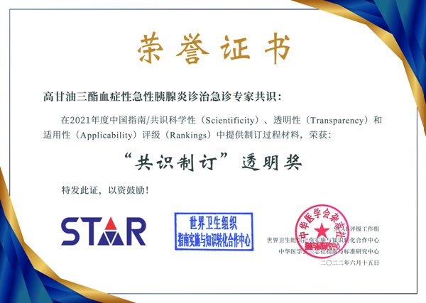 近日,由西安交通大学第二附属医院急诊科执笔撰写的《高甘油三酯血症性急性胰腺炎诊治急诊专家共识》荣获STAR“共识制定”透明奖。 “STAR”是由STAR评级工作组、世界卫生组织指南实施与知识转化合作中心、亚洲指南联盟、...