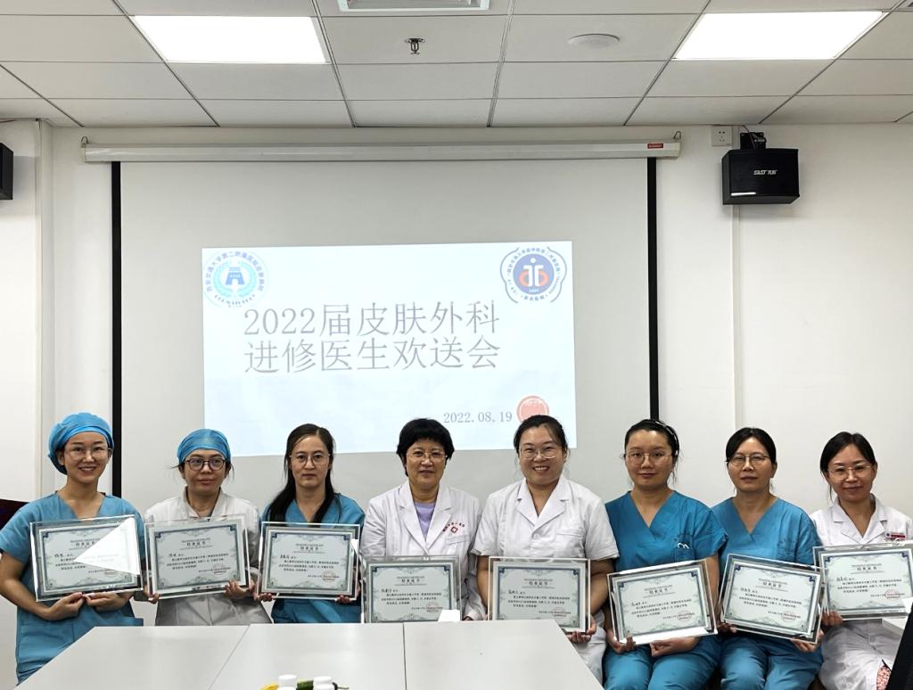 一段征程,一份收获,一份情谊。在第5个医师节来临之际,2022年8月19日中午,西安交通大学第二附属医院皮肤外科特为本期进修医生们举办了“2022届皮肤外科进修医生欢送会”。欢送会由皮肤外科组长程传涛主持,西安交大二附院皮肤科耿松梅主任、...