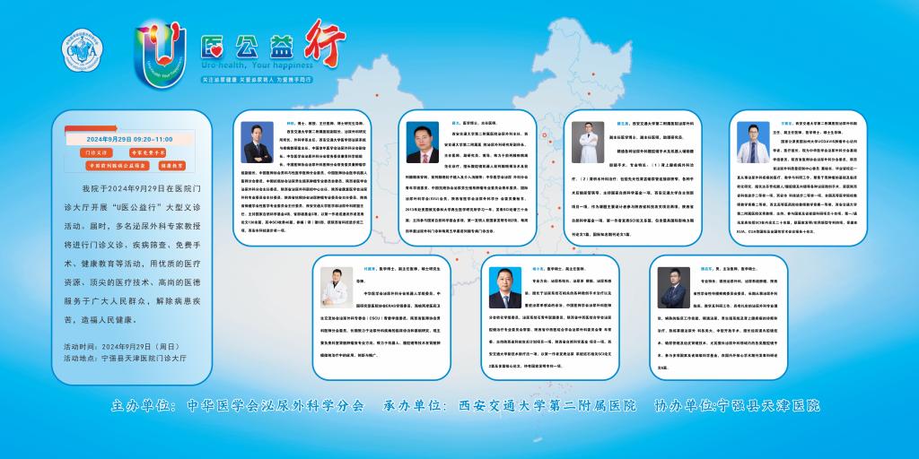 “U医公益行”是由中华医学会泌尿外科学分会举办的全国性公益医疗活动。活动以“关注泌尿健康,关爱泌尿病人”为宗旨,旨在用优质的医疗资源、顶尖的医疗技术和高尚的医德服务于基层人民百姓,解除病患疾苦,助力健康中国。