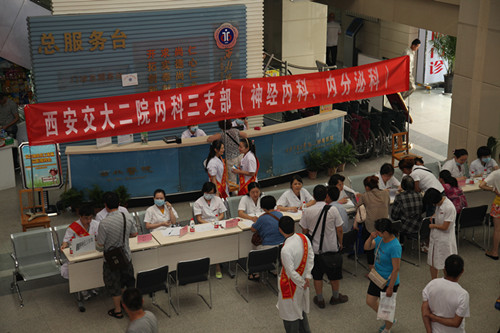 为了深入贯彻十八大精神,纪念党的92周岁华诞,切实为民服务,提升医疗质量和服务能力,借 “七一”之际,神内与内分泌科党支部在综合大楼大厅组织了义诊活动。