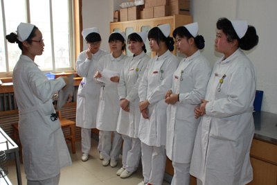 为了贯彻落实护理部对3年内护士的理论及操作培训要求,加强护理队伍建设,以促进护士的临床工作能力和业务水平,内分泌科护理组于3月2日下午,在临床操作示教室再次进行了护理操作技能训练,在王玉环教授及教学科的帮助下、在护士长李小红及副护士长龙俊宏的组织下举行了护理操作大练兵。