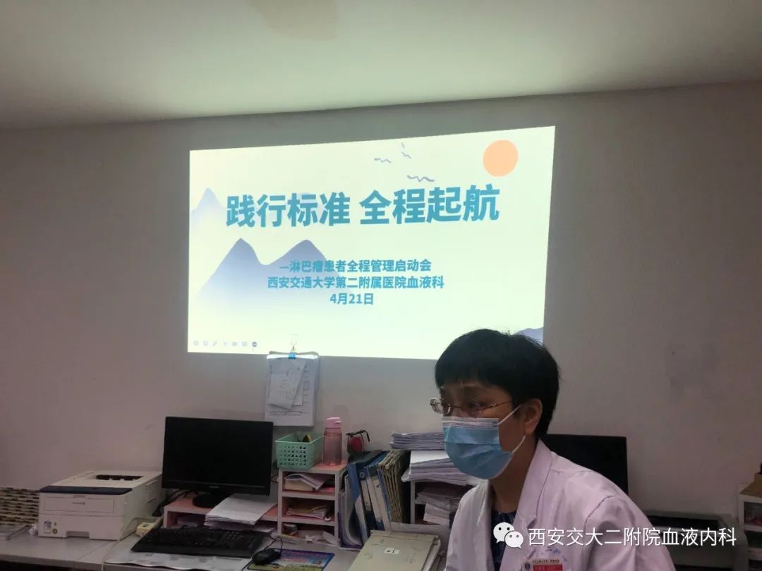 2021年4月15到21日是第27个全国肿瘤防治宣传周,今年肿瘤防治宣传周的主题是“健康中国健康家,关爱生命,科学防癌”、“点亮抗癌之路,助力健康中国”,旨在呼吁全社会合力参与到抗癌防癌的行动中来,共同助力健康中国的伟大远景。为认真贯彻党中央国务院对癌症防治工作的决策部署,推动落实健康中国癌症防治专项行动,助力淋巴瘤点亮陕西省抗癌之路,西安交通大学第二附属医院血液科秉承以患者为中心的理念,于4月21日在西安交通大学第二附属医院血液科示教室举行淋巴瘤全程管理启动会议,期望可以建立 “患者导航员-关爱顾问”模式,协助患者与医生保持良好沟通,提升治疗信心,形成规范化治疗习惯 ,提升治疗依从性,以期提高淋巴瘤患者的生存期,提升患者的生活质量,对淋巴瘤患者进行规范化的全程管理。
