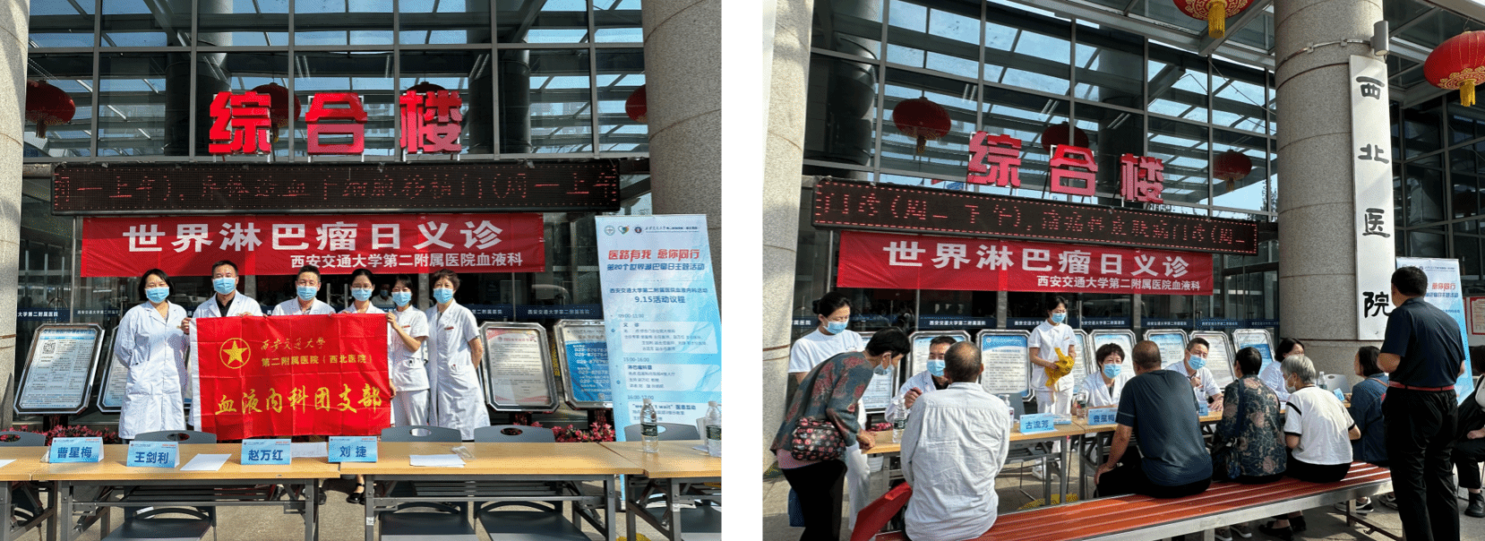 淋巴系统是人体重要的“安保”系统,其中的淋巴细胞,充当了身体的抵抗力士,抵御细菌和病毒等入侵者,坚守着身体的健康阵地。而淋巴瘤就是一种源自这个“安保系统”的恶性肿瘤。由于淋巴细胞遍布全身,淋巴瘤在不同组织和器官中的发病症状多种多样,具有极高的多样性和复杂性,可谓“千变万化”,非常狡猾。与其他实体肿瘤相比,淋巴瘤具有更高的治愈率。但这种特殊的疾病需要在血液和淋巴瘤专科接受专业的诊断、治疗和随访。 2023年9月15日,为了提高公众对淋巴瘤的认知和关注,西安交通大学第二附属医院血液科于“国际淋巴瘤日”举办了以“精准诊断、专业治疗、重返健康”为主题的义诊和患者教育活动。
