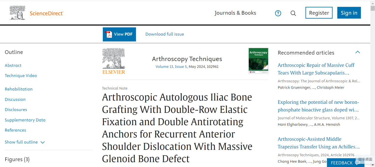 此项创新技术展示于期刊Arthroscopy: The Journal of Arthroscopic and Related Surgery(关节镜-关节镜及相关外科杂志),是创立于1985年,AANA(北美关节镜学会)及ISHA(国际髋关节镜学会)的官方杂志,中华医学会运动医疗分会合作杂志与国际会刊,是国际最具影响力的骨科运动医学领域期刊之一,重点关注骨科运动医学领域关节镜微创技术的临床应用、手术技术及相关基础研究,旗下手术技术类期刊《Arthroscopy Techniques》旨在为运动医学关节镜医生及相关研究人员提供实用的、临床相关的、创新的手术方法,在运动医学原创技术交流方面享有盛誉。