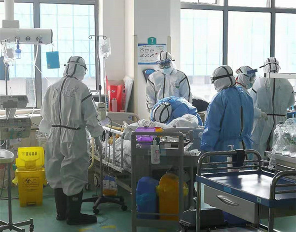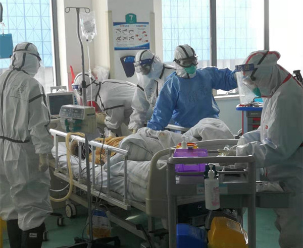 忙碌继续着,重症监护病房的主任突然来找我,看到他,我真的很心酸,穿一件无纺布的防护服,很皱,估计时间没有换过了,护目镜的松紧带坏掉了,自己又打了好几个结勉强固定着,身型瘦弱疲惫。他用武汉话告诉我,今天要收8个重病人,把轻点的患者再转到普通病房,我感觉压力山大。很快,转来一个病人,已经意识不清了,紧急抢救后带上呼吸机后,患者指脉氧才缓慢回升。这个患者刚处理完,又来了一个门诊收入的患者,指脉氧测不出,一番紧急救治后,患者维持住了生命体征。就在这时,原住的监护患者又出了状况,血压测不出,又是一波紧急抢救,患者逐渐恢复了意识。