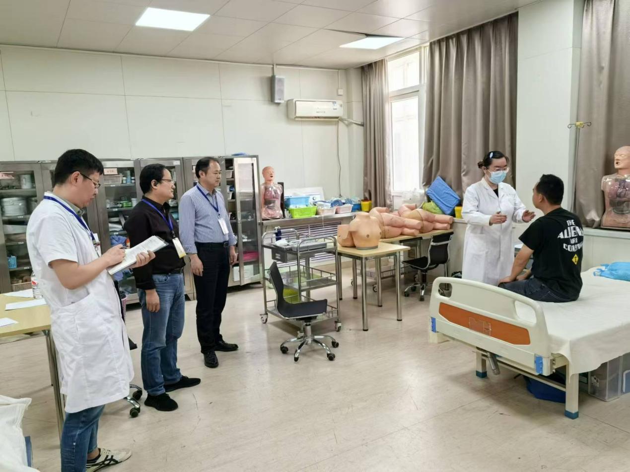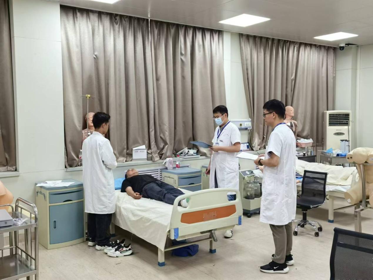 本年度的考试仍沿用客观结构化临床考站(OSCE)模式,采用多站并行。考试期间,技能中心科学设计考试流程,合理疏导,考场井然有序。从各学科系抽调的考官,在繁忙的临床工作之余,顶着炎热的天气,以饱满的热情和严谨的态度,认真执行了监考工作,技能中心工作人员全员在岗,协调各项工作,聘请的标准化病人和查体志愿者也积极配合,保证了考试的顺利进行。考试期间种铁副院长、医学部人才培养处王渊副处长、教务部周戬平副主任作为巡考也到场对考试工作进行督导,保证顺利进行。
