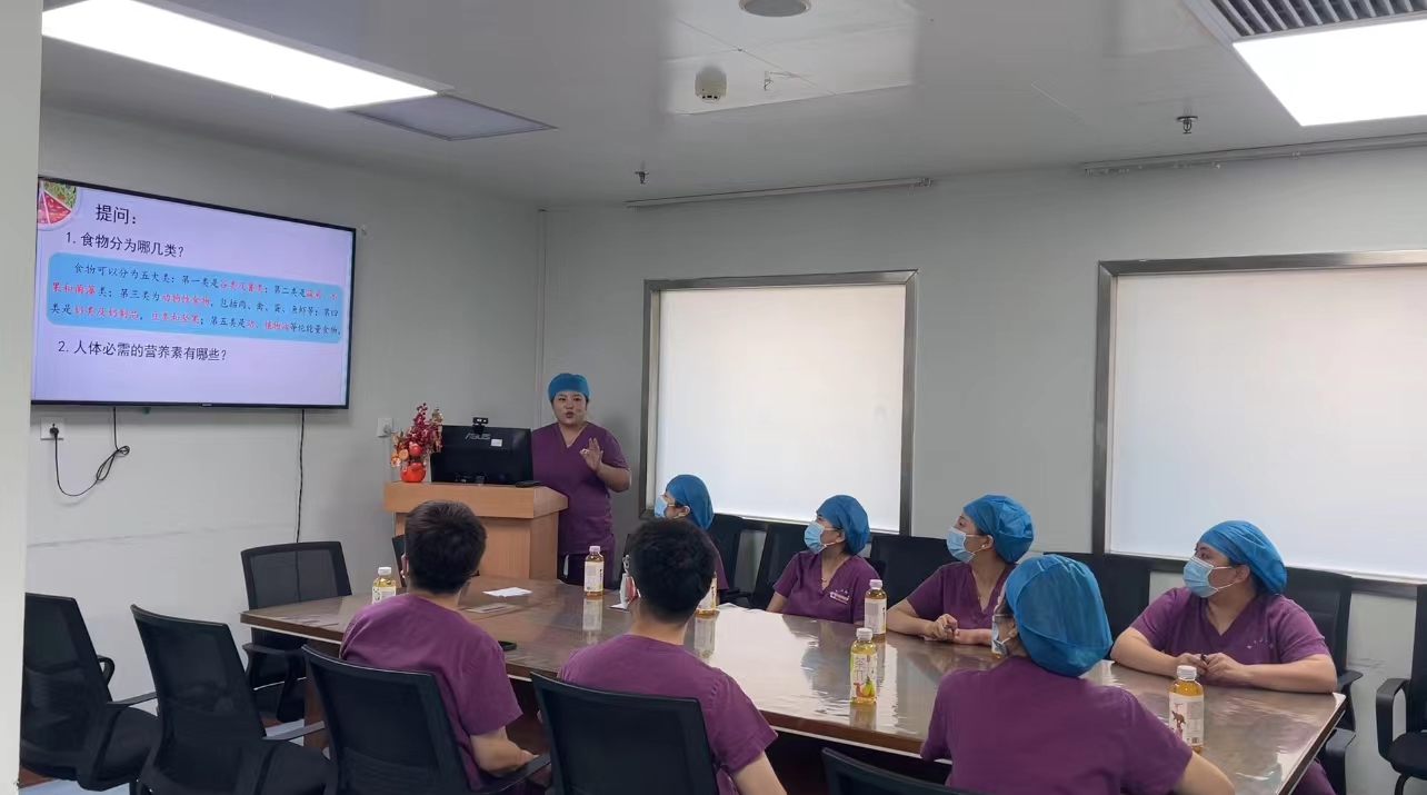 5月15日下午在西二楼八楼会议室开展营养护理小组专题学术讲座,由神经内科王金娟护士长主持,营养护理小组组长杨会主任护师、陕西省营养学会老年与慢性病营养护理分会部分委员及营养护理小组核心成员、各科联络员50余人参与此次活动。首先由营养护理小组组长杨会主任护师进行2024年全民营养周主题推广,接下来由重症医学科吴媛副主任医师、消化内科汪永华副主任护师、干四张丽护士长分别进行营养专科知识授课。营养护理小组组长杨会主任护师总结,本次课程授课老师精心准备,授课精彩、内容充实。通过此次专题学术活动的开展,让大家再一次了解了健康的营养膳食结构,健康的生活的方式。