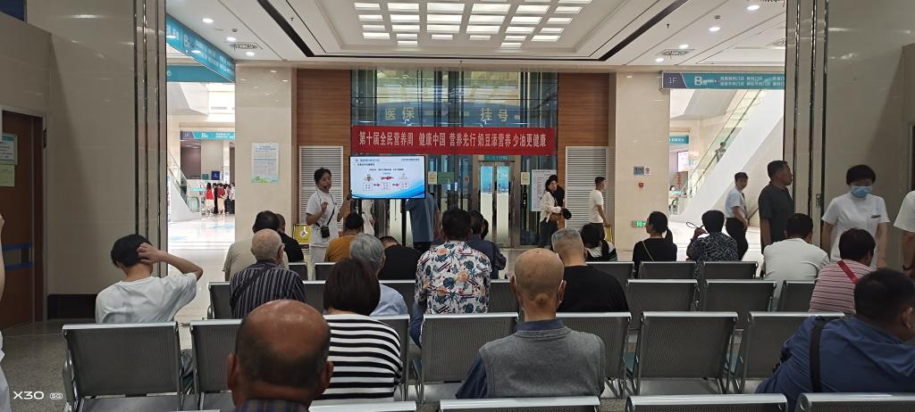 5月14日上午,首场营养科普活动在主院区门诊三楼举办,此次活动由营养科和院营养护理专科小组组织,由营养科李菁医师和赵皎洁医师分别针对本次主题“奶豆添营养,少油更健康”进行科普讲座。现场的40多位患者及家属反响热烈,互动积极,受到前来咨询患者的高度赞扬。