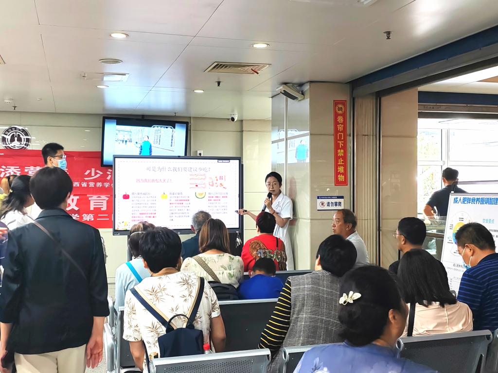 5月14日上午,大明宫院区门诊一楼同时开讲,在由院营养护理小组、临床营养科举办营养科普讲座,由心内科王芳主管护师、内分泌牛娜主管护师、营养专科护士李俊对就医患者进行营养知识讲座,营养科、消化内科 、内分泌科 、心内科等相关科室多名护士长及营养师参加活动。现场发放宣传资料共40余册,受众30余位,受到前来咨询患者的一致好评。