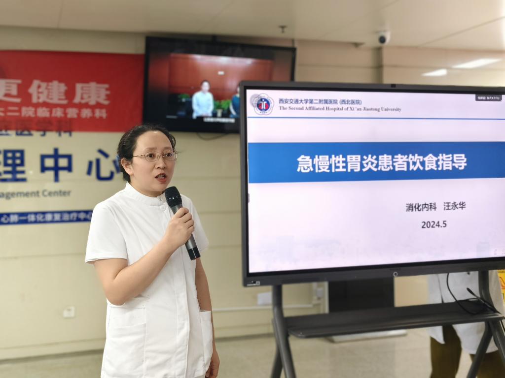 5月16日上午在主院区门诊三楼,由营养科刘杰医师和消化内科汪永华副主任护师分别带来《糖尿病饮食指导》、《急慢性胃炎患者饮食指导》。讲解深入浅出,吸引了在场的患者和家属,此次活动受众人群40余人,大家对于此次活动给予了高度评价。通过开展各类科普活动,以提高公众的健康意识和自我保健能力。