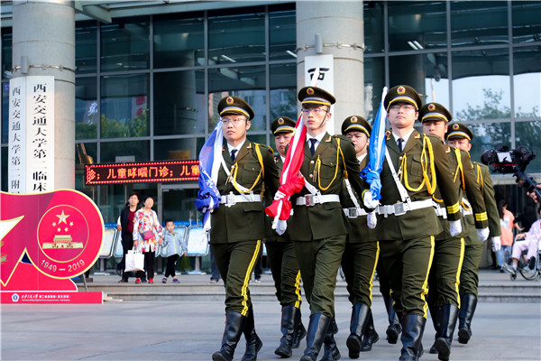 七十载风云际会、奋勇向前;七十载披荆斩棘、风雨兼程;七十载峥嵘岁月、波澜壮阔。为庆祝新中国成立70华诞,9月30日上午西安交通大学第二附属医院在门诊综合大楼前隆重举行升国旗仪式。医院领导、两委委员、各党支部书记、各科室正副主任、护士长、在职教工代表、学生代表、离退休职工代表300余人参加升旗仪式。
