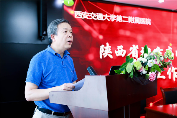 二附院党委书记巩守平代表中心依托单位——西安交通大学第二附属医院进行表态发言,表示一定按照省委、省政府、省科技厅和省卫健委的要求,为全省乃至全国致力于地方病防治工作者搭建好地方病临床研究的开放性平台,继承先辈扎根人民群众生活基层,脚带泥土做地方病研究的精神,在新形势下立足现有地方病防治研究,发现新问题,不负重任,不负防治研究地方病的初心,为人民群众的健康和完成国家脱贫攻坚重大任务承担应有的责任和担当。