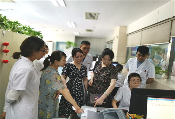 听取汇报后,检查组分头查阅医院医保管理组织架构和医保人员的构成情况、医保管理制度的建设情况、政策培训宣传和执行监督情况、以及廉洁自律等方面的资料,随后到住院病房、医保一站式窗口及特药审核窗口对医保管理工作进行现场考察。
