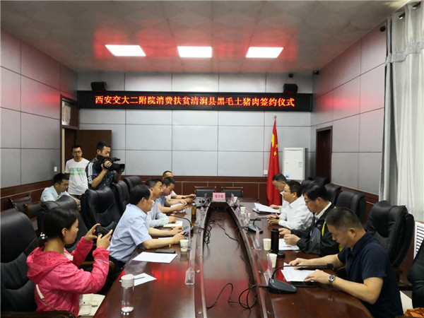 2019年是全国脱贫攻坚最关键的一年,也是国家卫健委定点扶贫清涧县摘贫困帽子重要一年。5月27日在清涧县挂职副县长刘世政陪同下,副院长李小鹏教授、工会主席陈海文教授等一行先后赴桃岭山村黑毛土猪绿色散养基地、标准化屠宰集中检验中心、塬上清涧电商服务中心等进行了考察,随后在县政府与清涧县主管扶贫工作的惠生卫副县长、刘世政副县长、电商中心主任等进行座谈,清涧县领导对交大二附院积极的消费扶贫表示感谢,希望通过多举措消费扶贫协助清涧县顺利脱贫,李小鹏副院长在发言中讲到交大二附院作为国家卫健委委属委管的大型公立医院,多年来始终秉承医院的公益性,在国家扶贫战略政策指引下,积极圆满完成多项扶贫任务,多次受到当地政府的表彰奖励和受援地区单位的认可赞誉,为革命老区奉献一点爱心,助力清涧县顺利脱贫也是我们的责任和义务。会后工会主席陈海文教授代表医院与清涧县进行了黑毛土猪肉消费扶贫签约。
