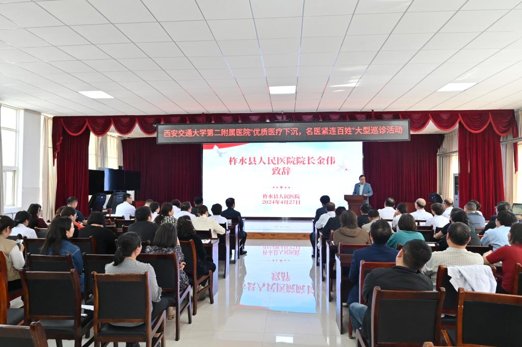 柞水县人民医院院长金伟介绍了柞水县人民医院基本情况,在“五一节”来临之际,县医院迎来了“优质医疗下沉、名医紧连百姓”巡诊活动,这是交大二附院、县委县政府、卫健局各位领导、各位专家和各界人士对柞水县人民医院工作的关系和支持。两院签订合作协议是将对医院综合服务能力再上一个新台阶起到巨大的推动作用,县医院将抓住难得的合作机遇,认真学习二附院先进的管理经验,学习专家精湛的医术,优质的服务和良好的作风,以合作为新的起点,着力提高医疗服务质量和水平。