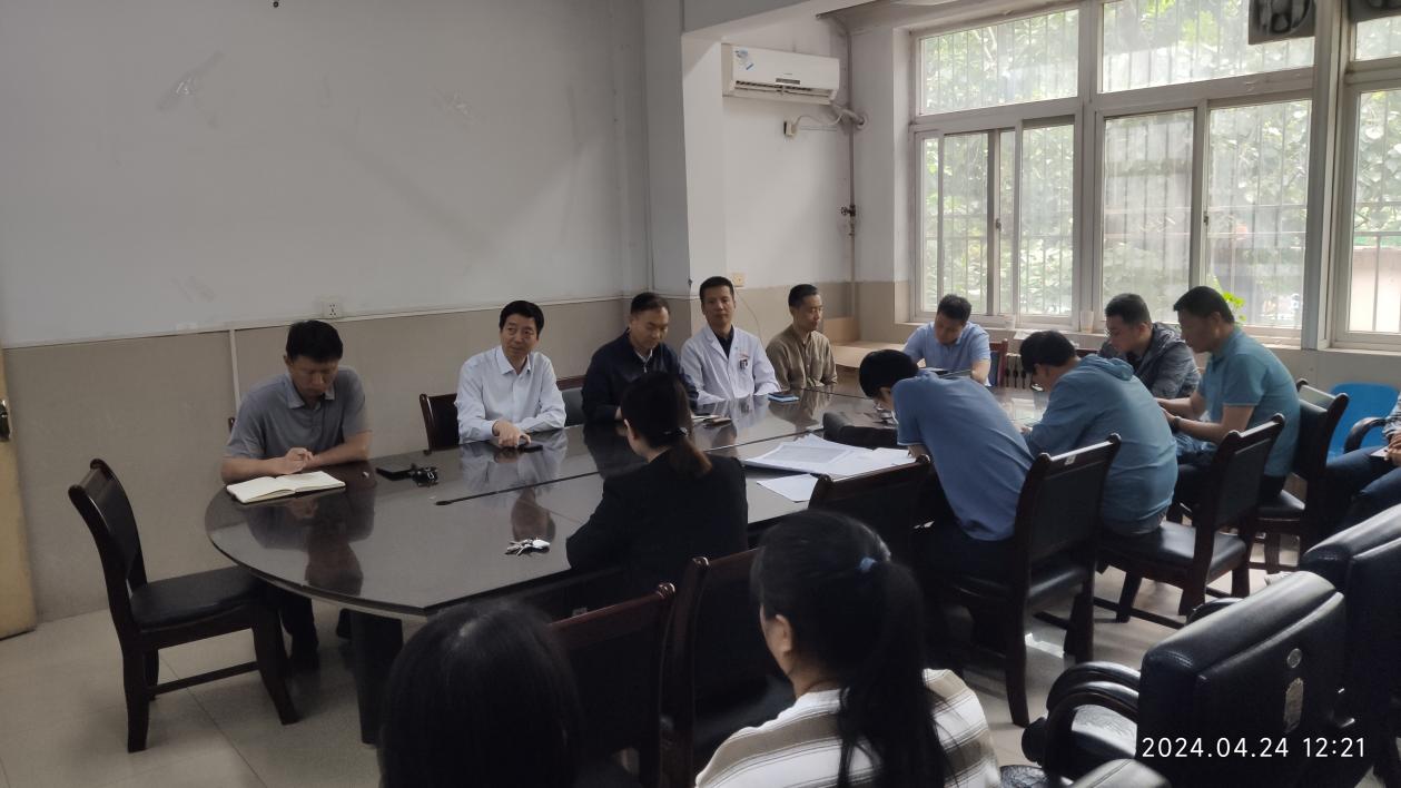 4月24日上午11点30分,种铁副院长在国有资产与医学装备管理办公室(以下简称国装办)二楼会议室召开部门工作会,国装办全体30余人参会,会议由国装办主任叶泽宇主持。