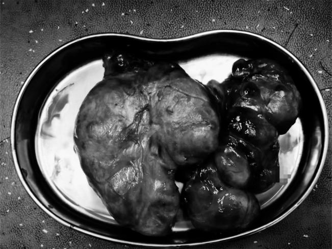 切除下来的颈部巨大肿瘤