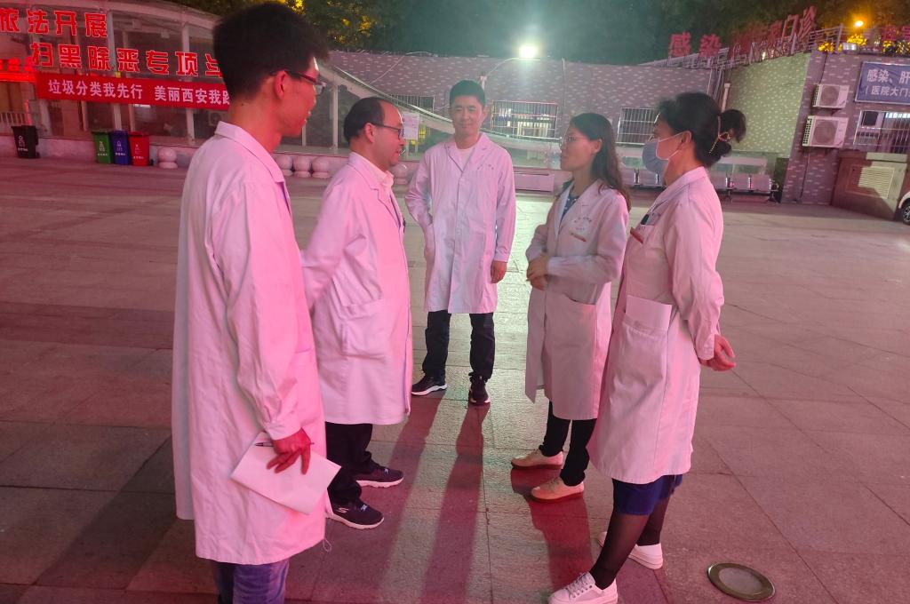 夜幕降临,万籁俱寂,而医院的灯火依旧通明。在张蓬勃副院长部署下,医务部常务副主任王虎清协同同艳妮、寇惠娟、李明、张晨、潘善国五位副主任带领医务部工作人员组织医疗夜查房工作。